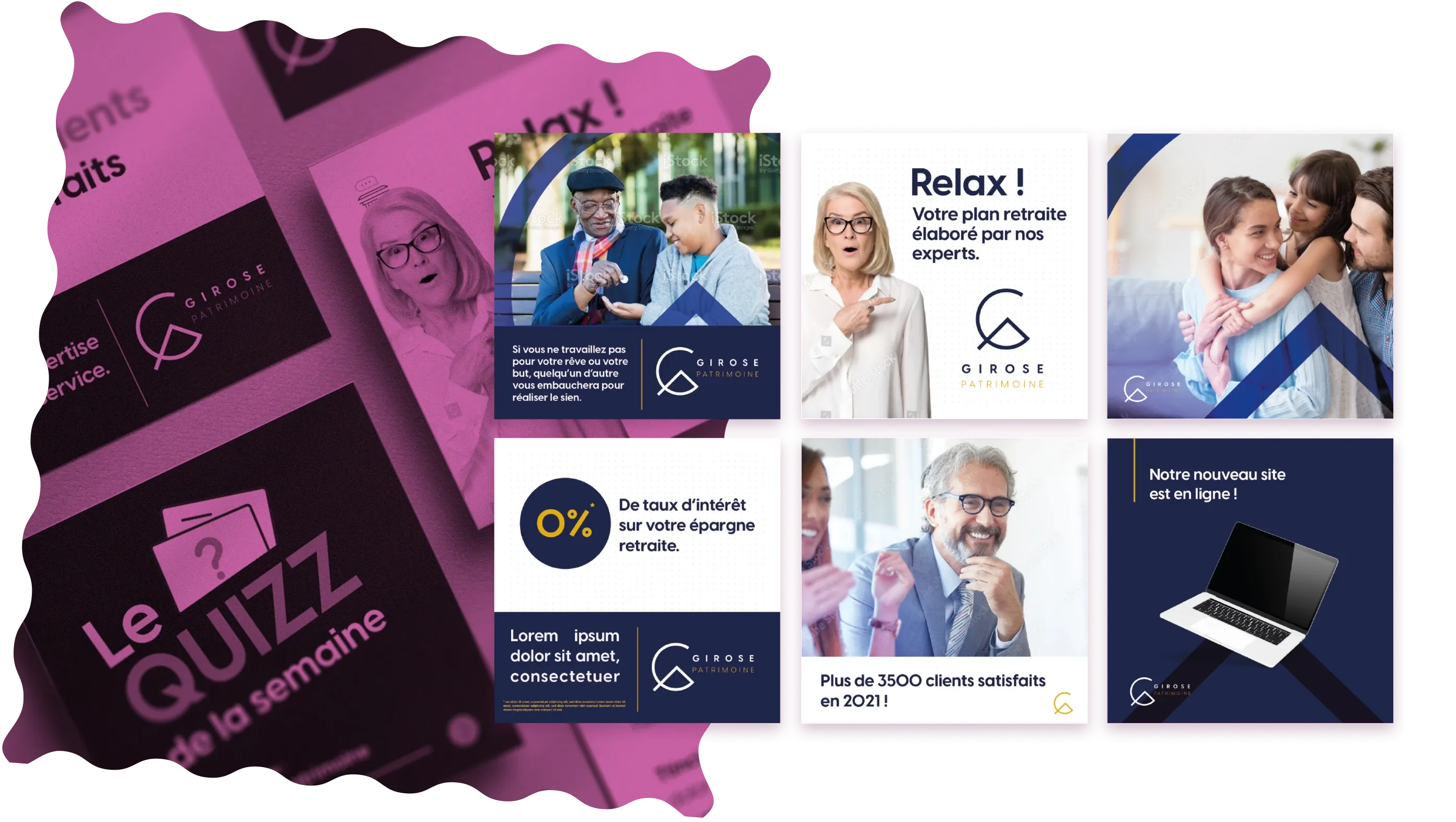 Girose patrimoine est une entreprise de conseils en placement et gestion de biens financiers et d'assurance. Ma mission a été de créer des visuels pour les réseaux sociaux et un système de design rapide pour Canvas, afin de permettre au client de pouvoir facilement créer des publications.