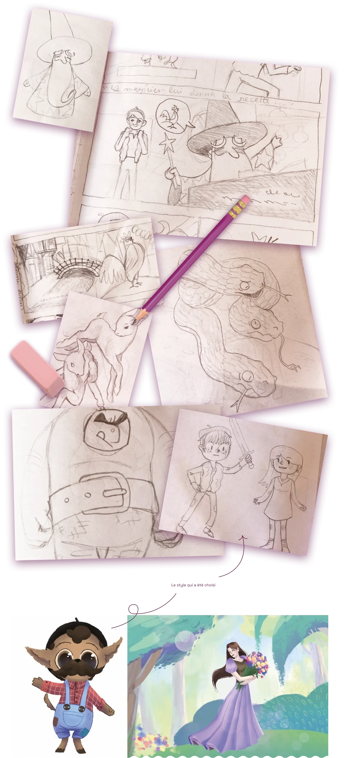 visés. J'ai réalisé des croquis préparatoires, des dessins et des